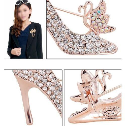 Product details are as follows* SODIAL is a registered trademark. ONLY Authorized seller of SODIAL can sell under SODIAL listings.Our products will enhance your experience to unparalleled inspiration. SODIAL(R) 1X High-Heeled Shoes Brooch Pin Rhinestone Covered Scarves Shawl Clip For Women Ladies