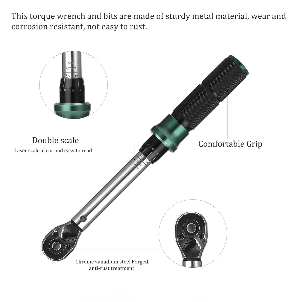Preferred Material: This torque wrench and bits are made of sturdy metal material, wear and corrosion resistant, not easy to rust. The handle has a clear scale for easy torque setting.