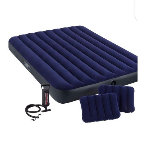Intex Inflatable 10inch Classic Downy Airbed With Pump + Two Pillows -2 person- 1.52m x 2.03m x 25 cm) (W X L X H)