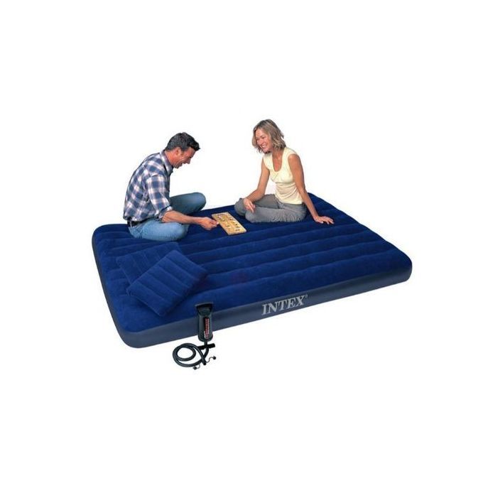Intex Inflatable 10inch Classic Downy Airbed With Pump + Two Pillows -2 person- 54'' x 75'' x 10" (1.