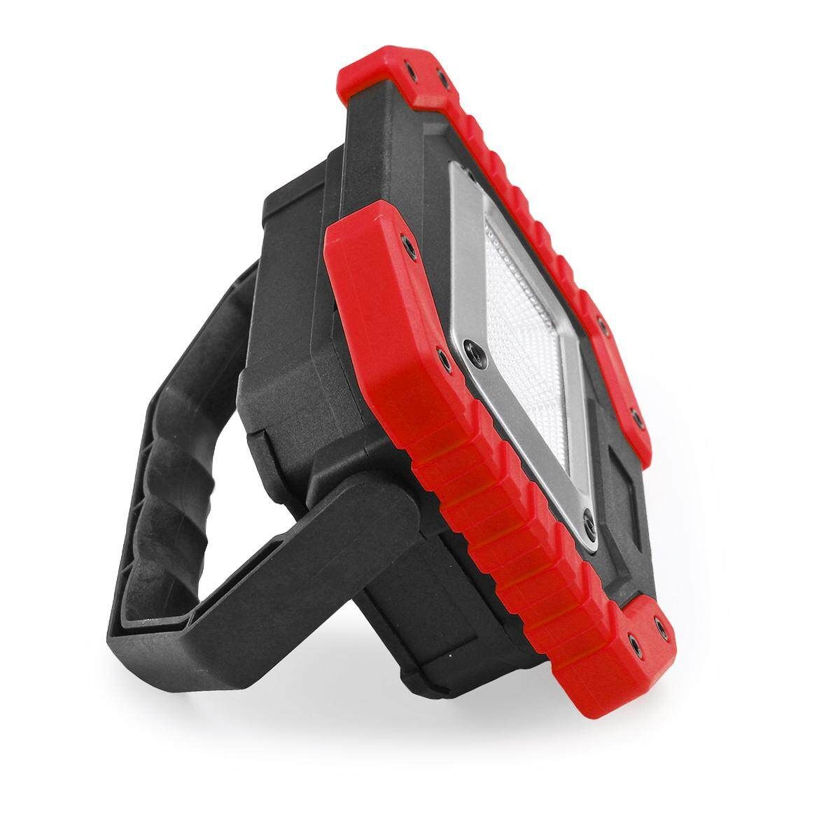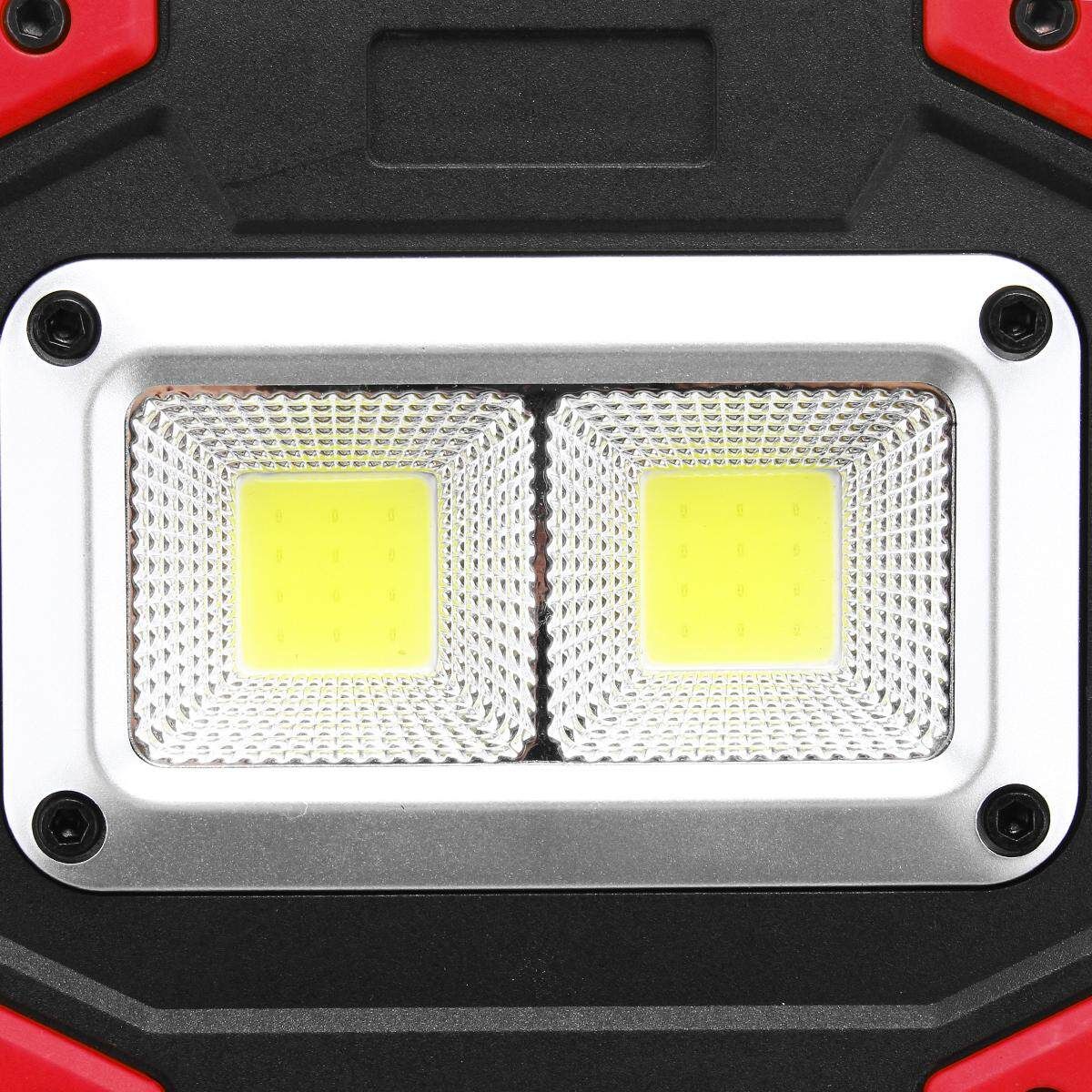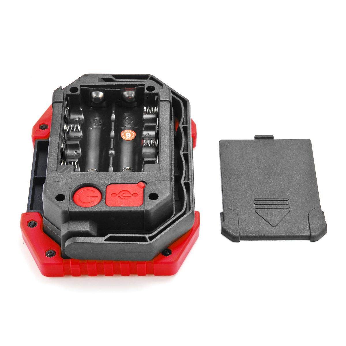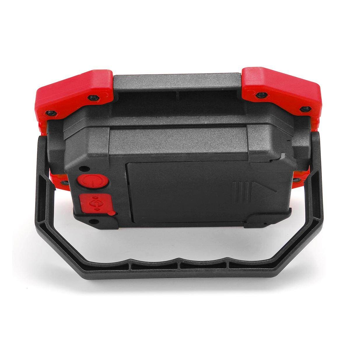 FEATURES: 1 Super Bright Saving: 120W handheld portable lighting, , replace 300W traditional halogen bulb by 120W COB LED and save 80% on electricity bill of lighting 2 3 Modes IP65 Waterproof: Press the switch on button turn on the rechargeable cob work light: High, Low, Strobe Brightness Mode. IP65 Waterproof rating, ensure the led work light powered works fine in rainy days 3 LED Work Lights Portable Flexibility: Because the led work light adjustable is cordless. with a 180 degree adjustable lamp stand. So you can put it in anywhere just you like. led work light hanging on truck or hand held. Even on the ground , in the basement, garage or garden at night 4 LED Work Light Rechargeable Powered: Powered by 2 18650 -ion rechargeable batteries (not included) or 4 AAA batteries (not included), equipped a USB cable allows for quick and convenient charging. Also Serve as a convenient for Charging your phone and devices in emergency 5 Widely Used: Camping, Hiking, , Barbecue, Car Repairing, Truck, Shop, Exploring and more Outdoor Activities.