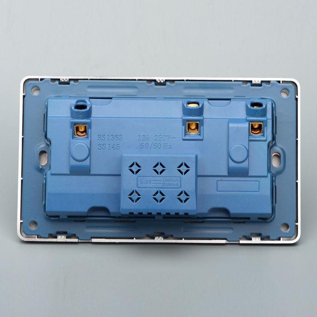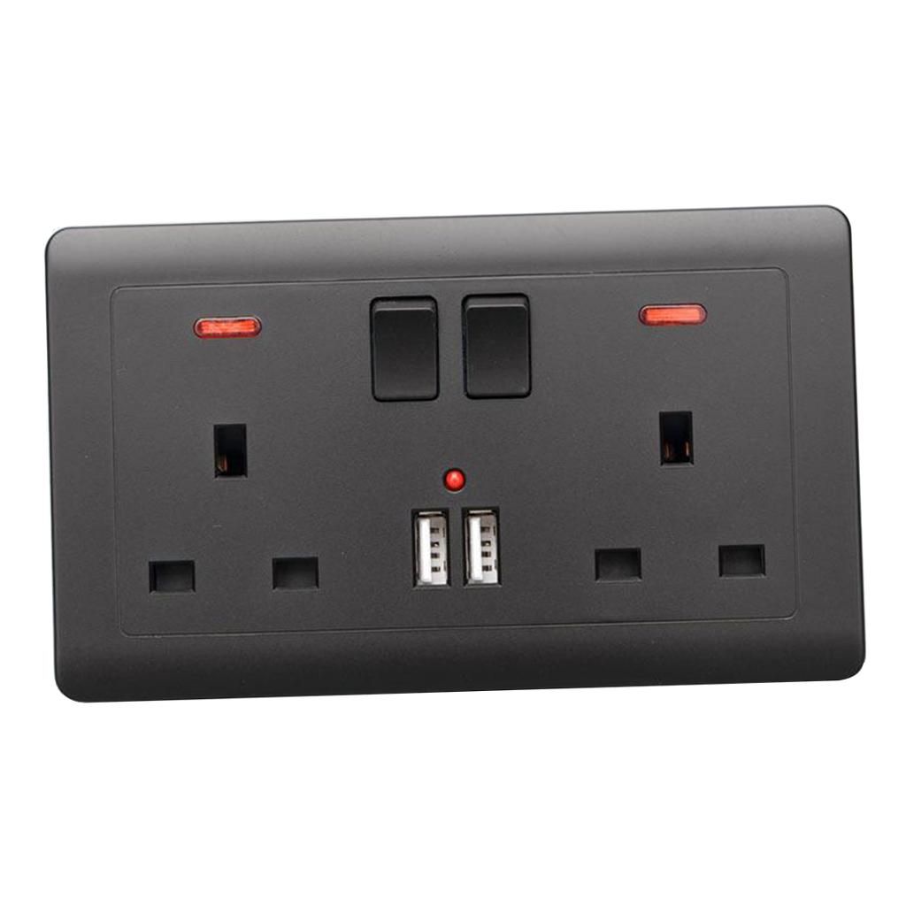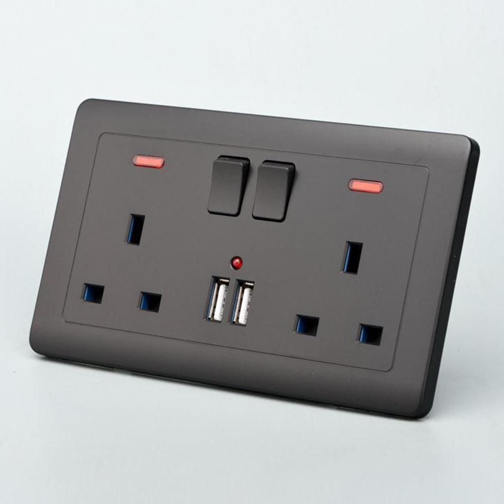 Double Wall UK Plug Socket 2 Gang 13A with 2 USB Charger Port Outlet PlateMade by fireproof PC material, high temperature resistant, safe to use.This USB Wall plate provides two standard AC plug wall electrical outlet and 2 USB outlets for charging Cell Phones, Tablets, and USB devices, etc.Easy to install, convenient to use, power saving.AC plug design, effectively avoid danger of electric shock.