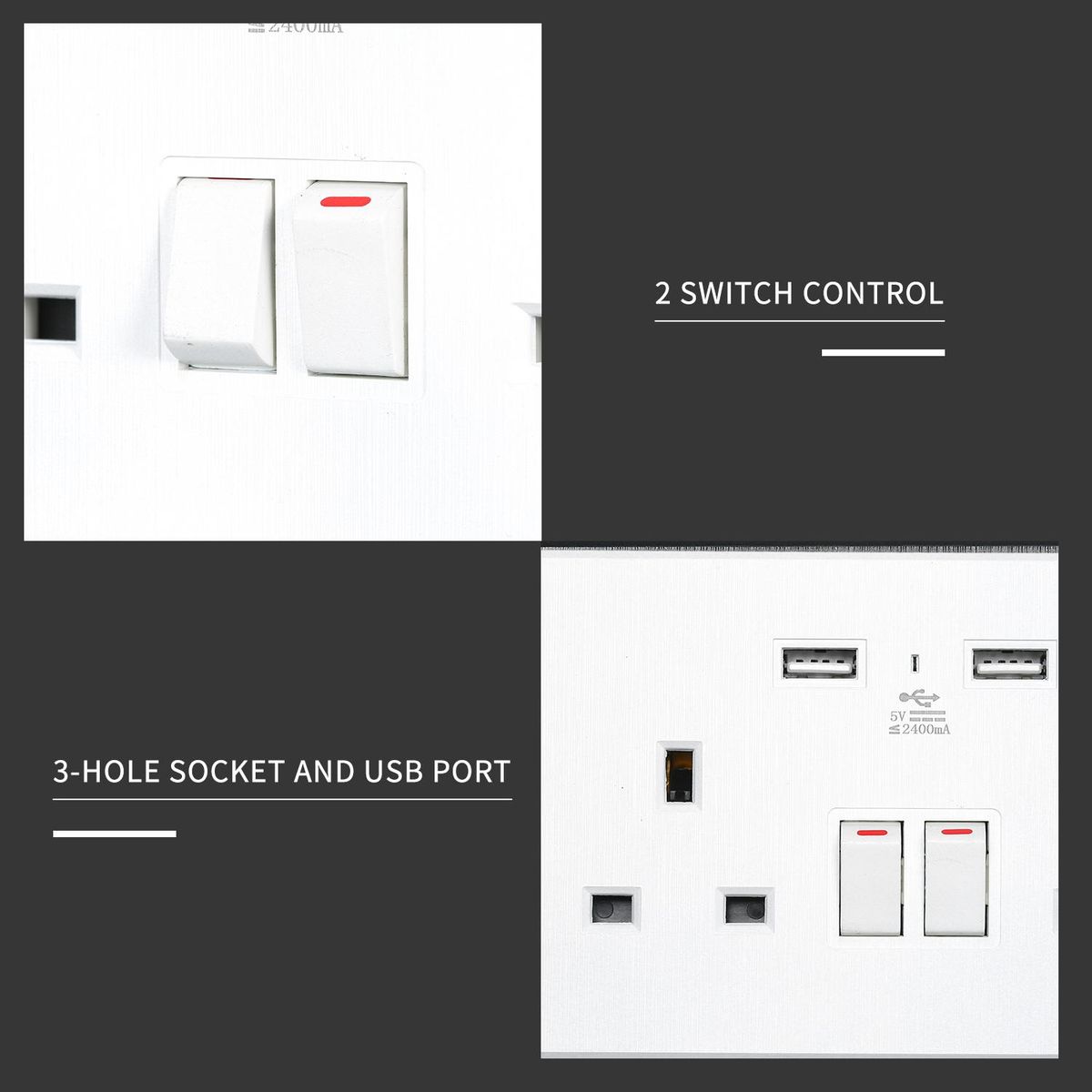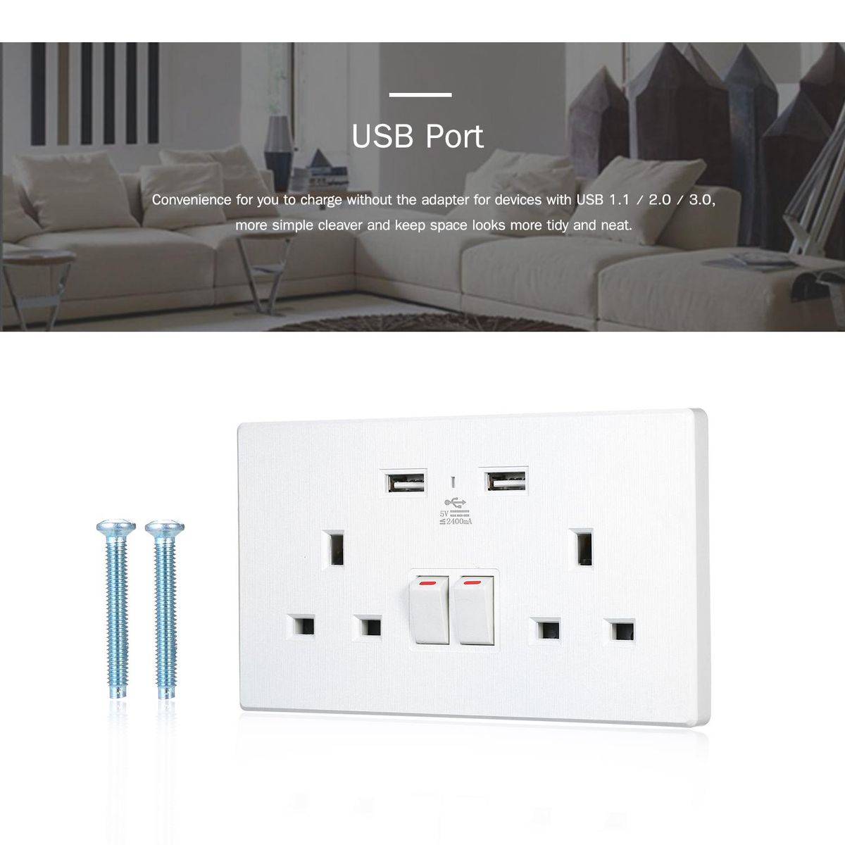 Buy 2 Gang Dual Plug Socket 13A with 2 5V 2.4A USB Port Wall Switched Outlete UK Standard in Nigeria