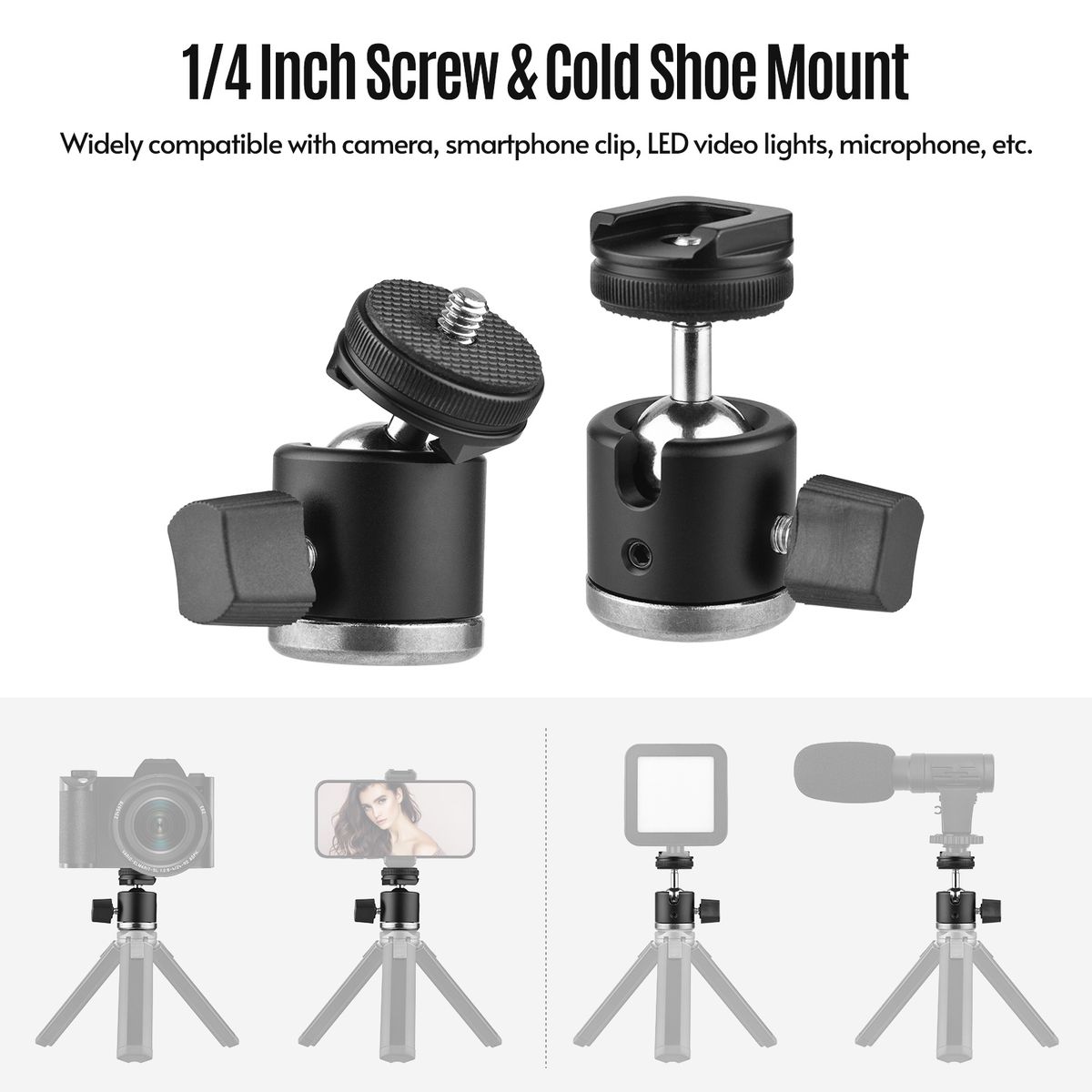 [1/4 Inch Screw and Cold Shoe Mount] Can be switched freely, widely compatible with camera, photography light, phone holder, tripod, and more.