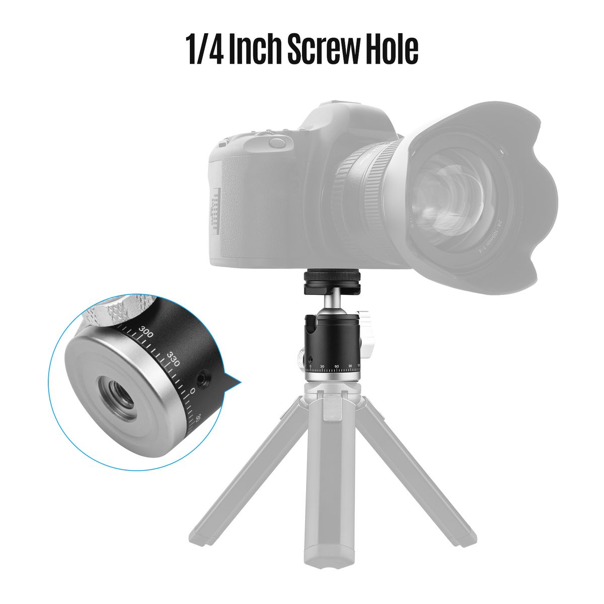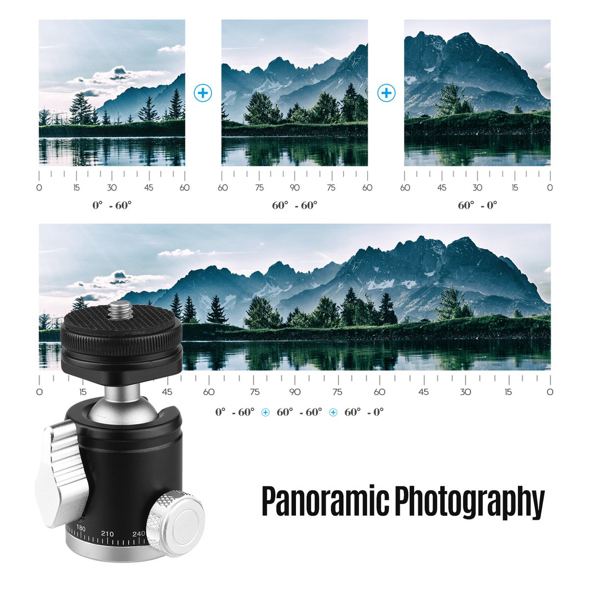 [360 deg; Rotatable] Smooth rotation and quick release and lock, easy to adjust angles; with panoramic scale, perfect for panoramic photography.