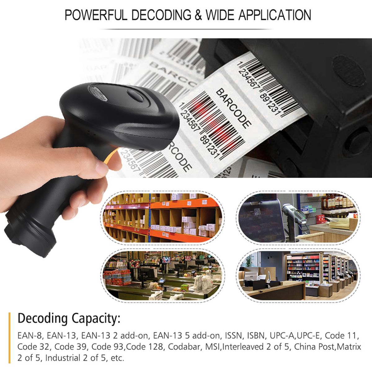 Multipurpose: Compatible for Android, Linux, Mac, Windows XP/7/8/10, etc. Support editing prefix and suffix of the targeted barcodes for you to mark or recognize them, widely applied in market, warehouse, library, express & logistics industry, retail store, medical management, etc.