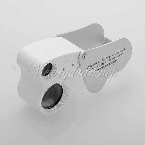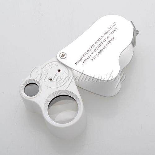 2 in 1 30x22mm 60x12mm Glass Magnifier LED Lens Loupe