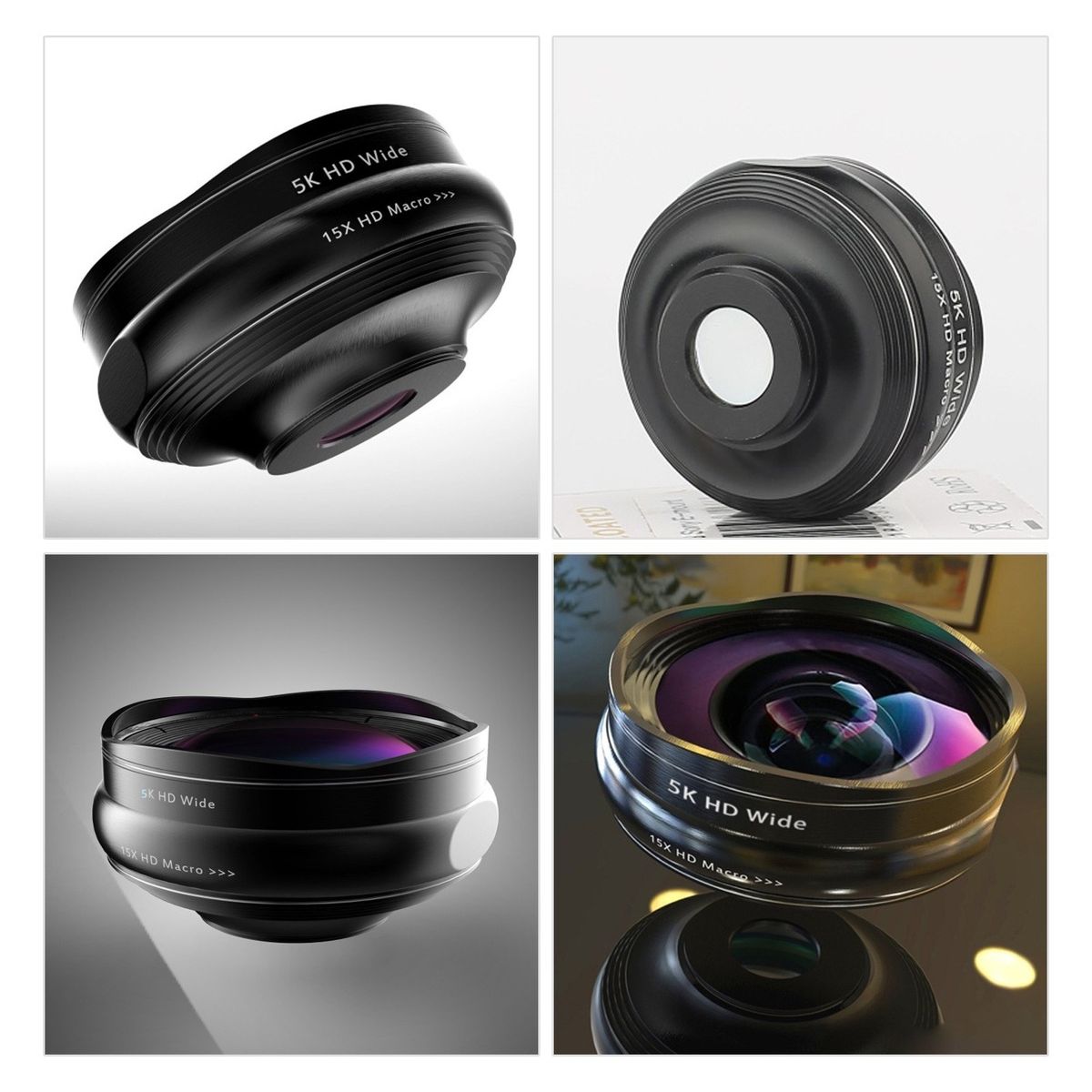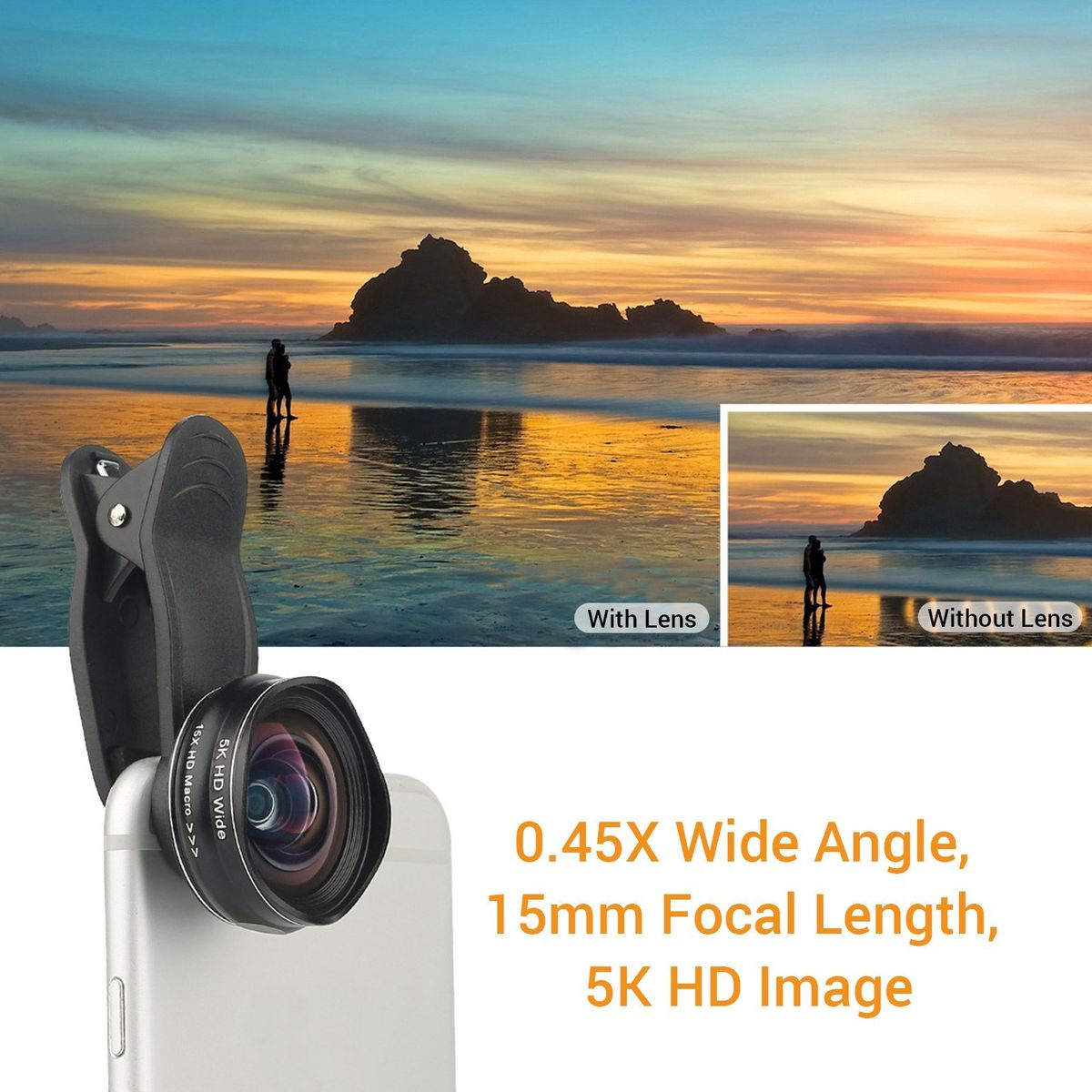 2-in-1 5K HD 0.45X wide-angle + 15X macro lens designed for smartphones.