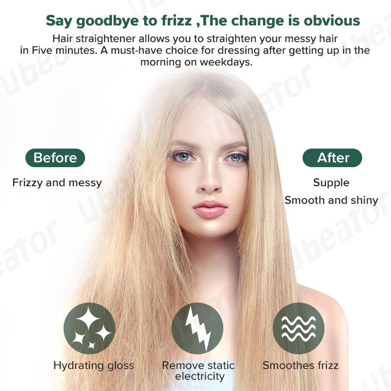 4.Release abundant Nano anions from heating plate to eliminate frizz and reduce static electricity.Straight hair without hair hurt, Even heat dissipation, constant temperature control.