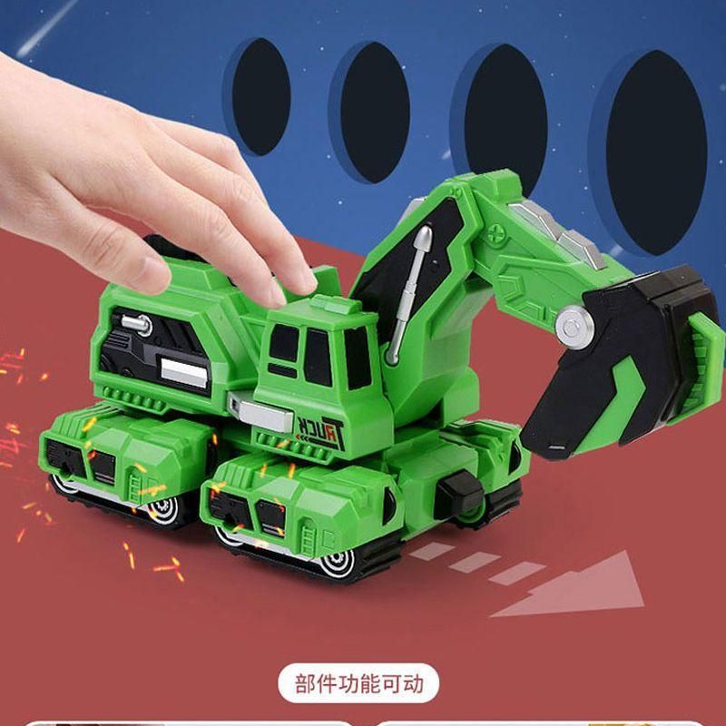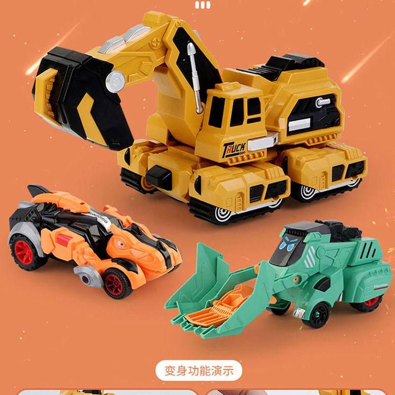 1X 2 In 1 Automatic Crash Deformation Inertial Dinosaur Engineering Vehicle Brachiosaurus Excavator Collision Transforming Car Toy