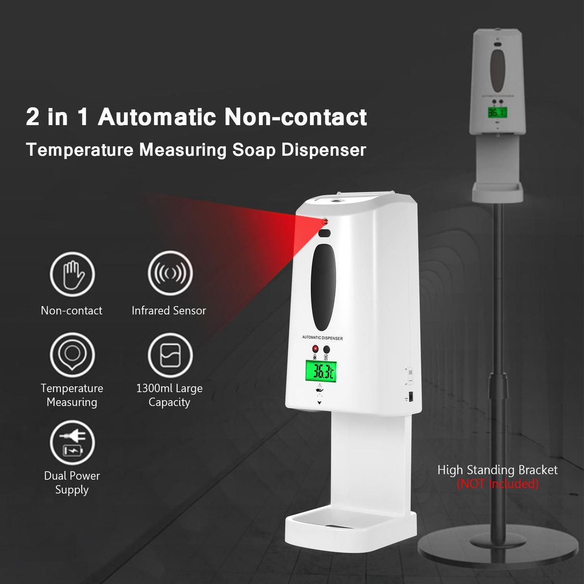 Buy 2 in 1 Automatic Non-contact Temperature Measuring Soap Dispenser with 3-Color Backlight LCD Screen 1300ml Auto Soap Dispenser Sprayer and Digital Infrared Thermometer Wall Mounted or Desktop for Home Commercial Public Places in Nigeria
