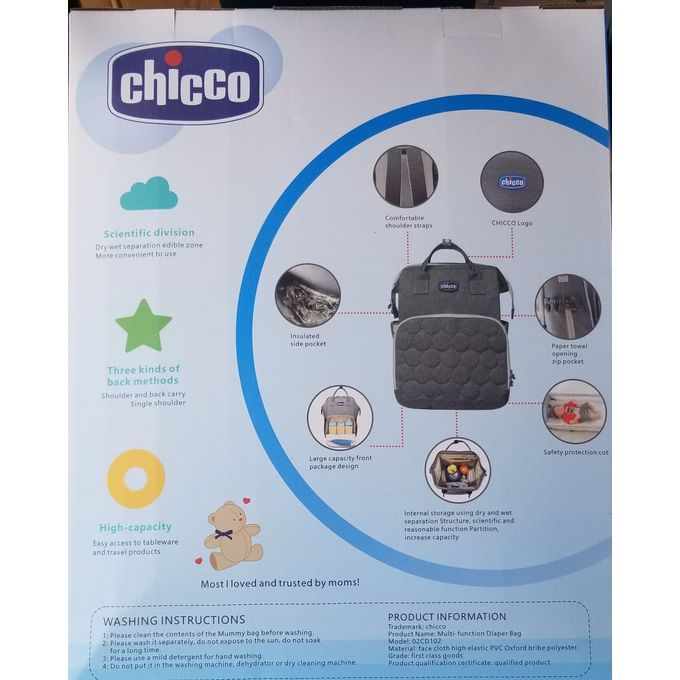 Travel Smart with this revolutionary travel bed! This is the ultimate travel bassinet for baby, combining a comfortable sleep with the convenience of a change station and the storage space of a diaper bag. Mom and Dad will love a single bag for all of baby's needs on your next vacation, or even just a trip to the mall. The travel system measures 30x15.5x7.5 inches open, making it appropriate for babies 0-12 months old. The bed folds in half to close, making it easy to stow away. Baby has put a lot of work into improving the 2 in 1 Travel Bags strength and overall design and have made the bag safer to keep baby free from any potential harm. We have listened to your feedback and made changes to improve customer satisfaction. For example: Chicco has streamlined the pocket design of the travel bag to keep the bag compact but leave enough space to hold all your baby's diaper changing needs for a full days outing as requested by customers Chicco has increased the thickness of the mattress and redesigned how the fitted sheet attaches to the mattress to remove the need of Velcro connections and makes removal and cleaning of the fitted sheet easier. Unlike other suppliers, Chicco has an easily removable main strap to detach while baby is sleeping for safety Chicco has used only the best color and durable fabric chosen for its ability to stand up to frequent folding and all day use. What comes with the Boxum 2 in 1 Travel Bag? 1. Mattress 2. Fitted sheet 3. Carry strap 4. Baby bottle cooler