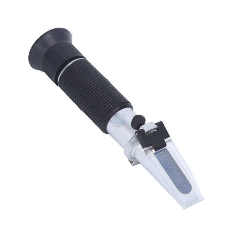 Item Type: Refractometer Material: Aluminum Alloy + Rubber Color: As shown in the picture Product Size: Approx.6.9in / 17.5cm Application: Reagent sampling Refractometer W / ATC Accuracy: ±0.5% Scope: 0-32%Brix 0-28% Resolution: 0.20%