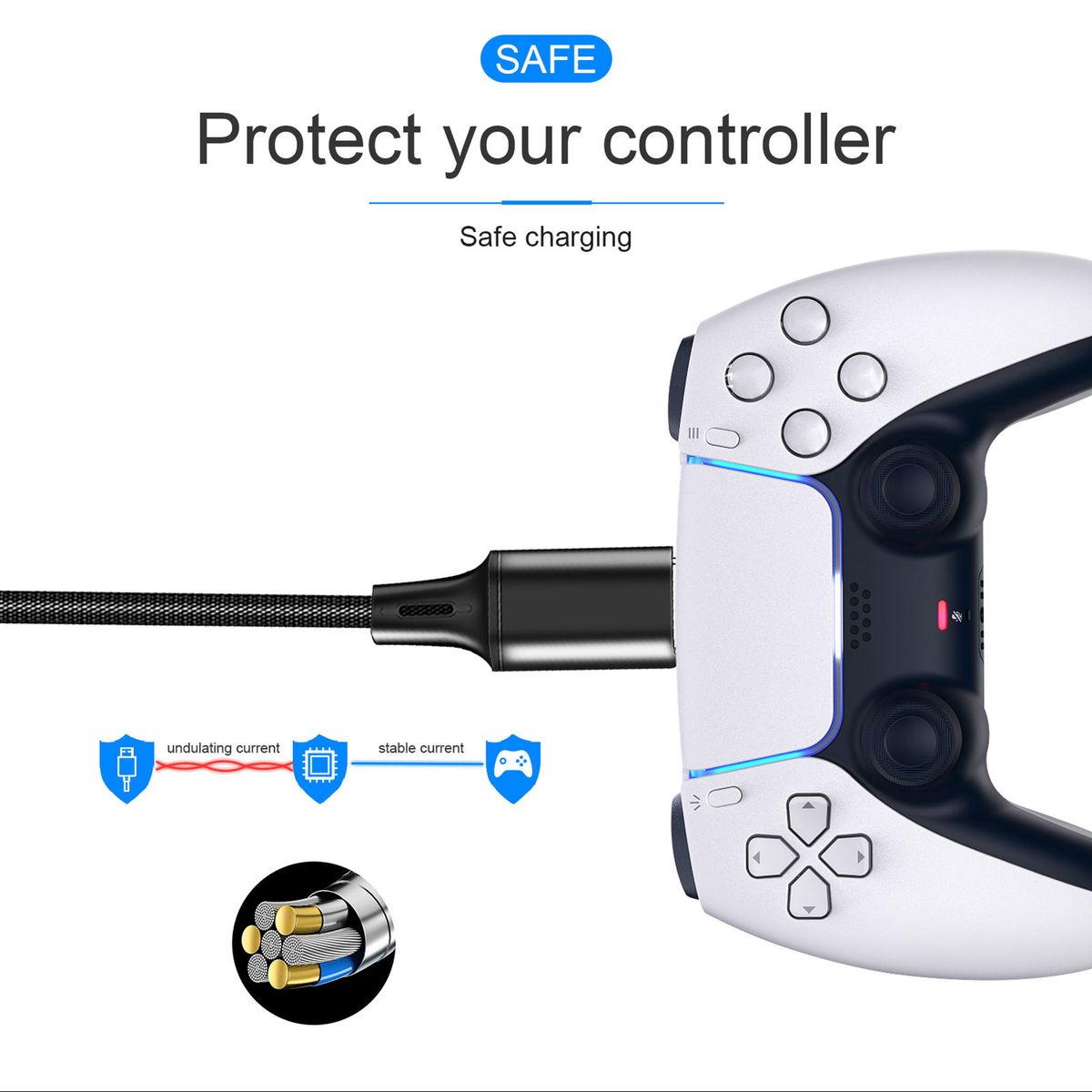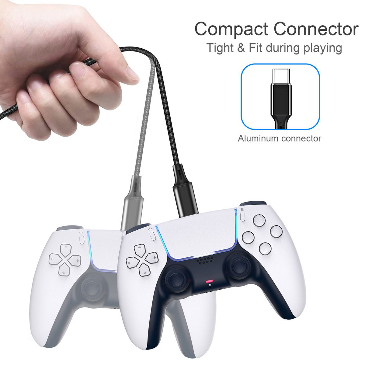 The charge cable of two ports supports to charge two controllers at the same time, quick and safe charge, replacement for PS5 controller.