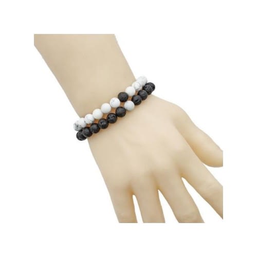 Buy 2 In 1 Crystal Matts Stone Beads Bracelets- Black & White in Nigeria