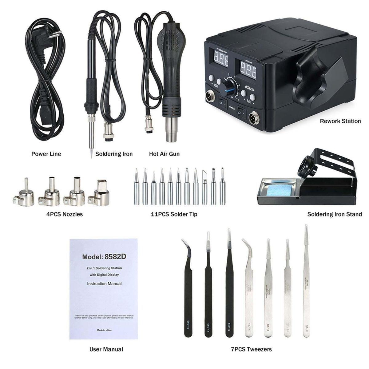 Buy 2 in 1 Digital SMD Rework Soldering Station Hot Air Gun Soldering Iron Stand Desolder Welding Tools Set 220V EU Plug in Nigeria