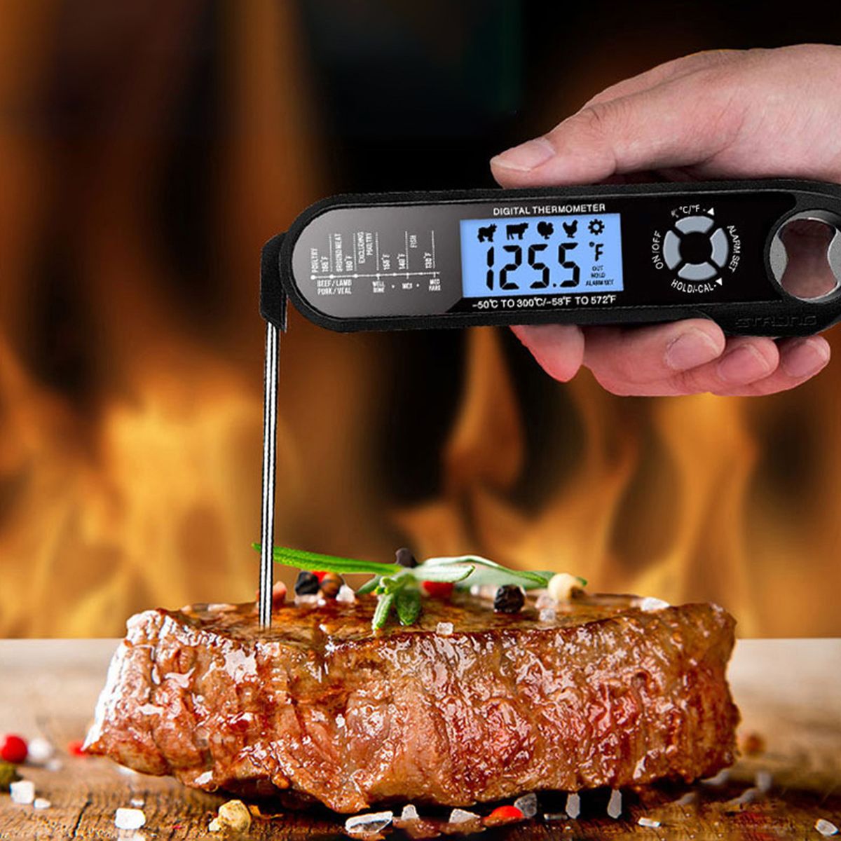 Function: Backlight, Calibration, Waterproof, Magnet, Bottle Opener, Alarm, Meat Selection