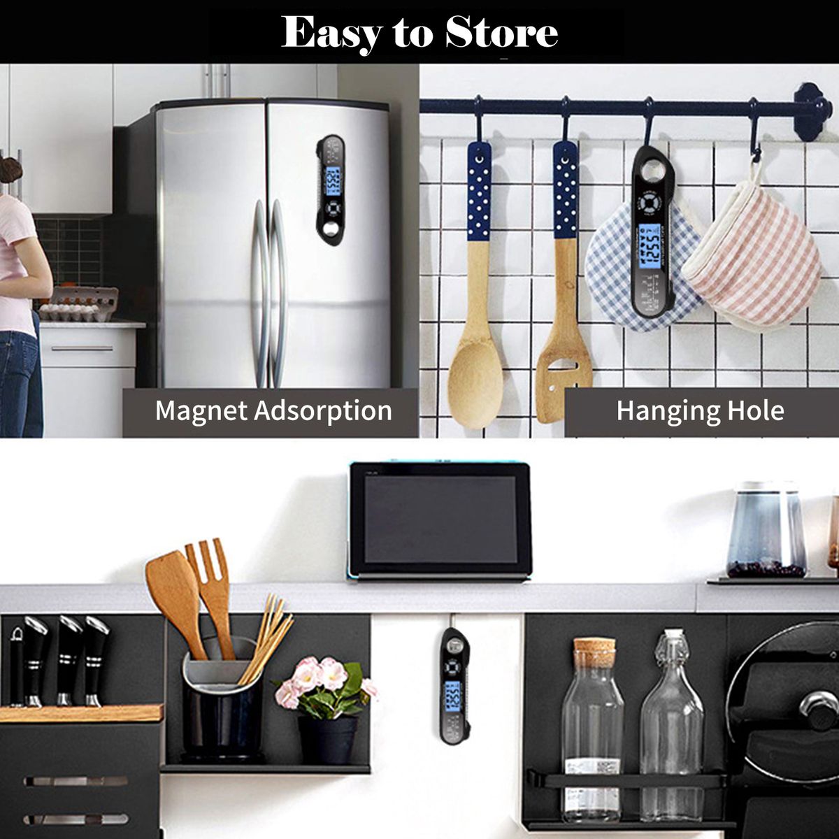 [Magnet Adsorption]Foldable BBQ thermometer with magnets on the back, you can stick it in the fridge, oven, and smoker or put it on the table.