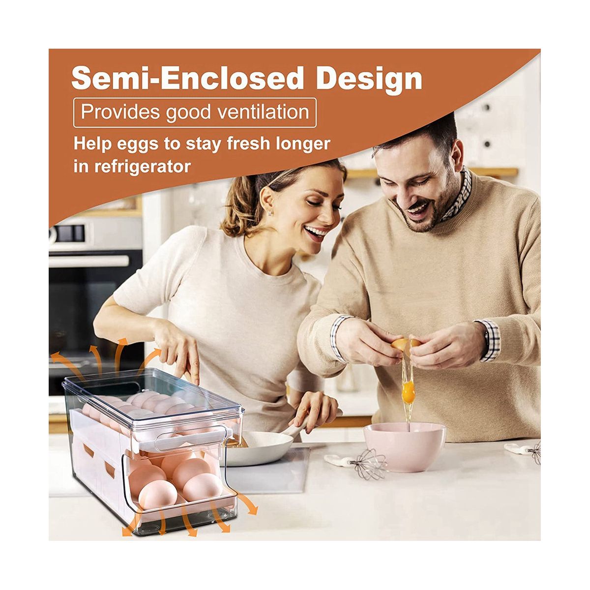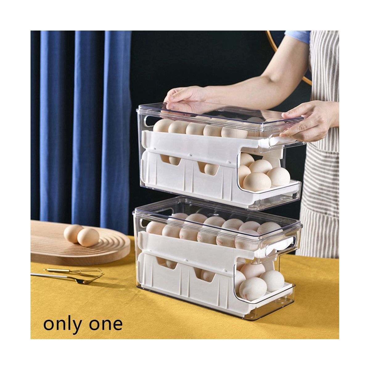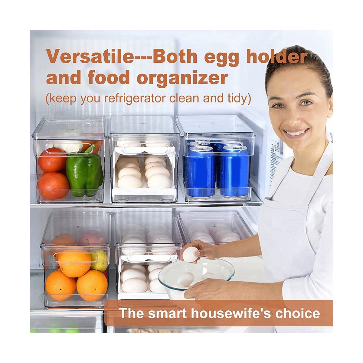 [Stackable Storage Box, More Safe]Comes with a stable clear storage bin to cover the rolling egg holder which reduce problem of egg cracked and leaking into the fridge. Durable Thick lid possible to load more organizer on top to creat vertical space, saving space and keep your fridge in order. Also, fridge egg holder can be used in a of scenarios. Perfect as egg/food/can container for refrigerator, kitchen, cabinets, table, restaurant, countertop