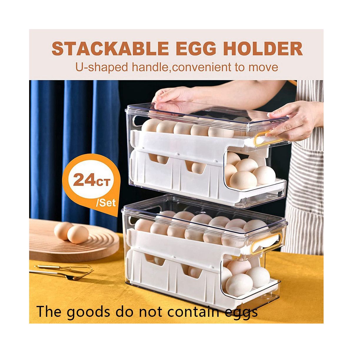 [ Capacity, Smaller Size]Storage more eggs with smaller size than other egg roller in market. 2 layer of egg storage container can to 24 eggs at once. only 16.6cm wide, it 't feel like a bulky obstacle, even if you're working with a small fridge. Space saver organizer for refrigerator