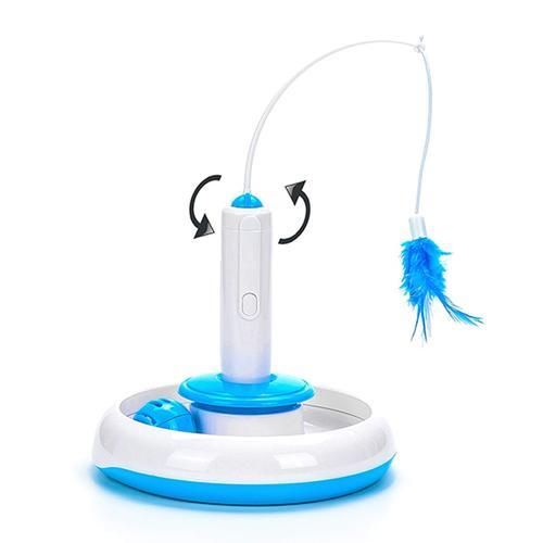 2 In 1 Electric Cat Stick and Tower of Tracks Automatic Rotating Interactive Cats Toys Ball Turntable Pet Kitten Funnny Sticks-Cat Toys