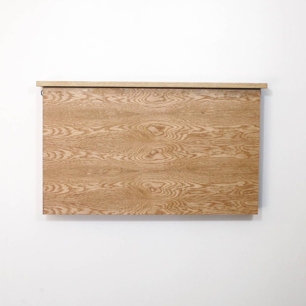 A very practical and elegant floating desk. It has a comfortable, openable desktop that is ideal for using a laptop. When folded,