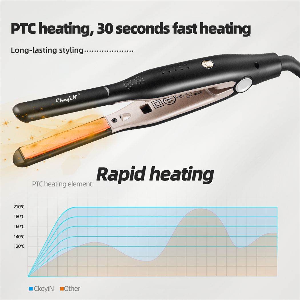 1X CkeyiN 2 in 1 Hair Straightener and Hair Curler 13MM Negative ion Narrow Titanium Plates Flat for Short Hair and Pixie Cut