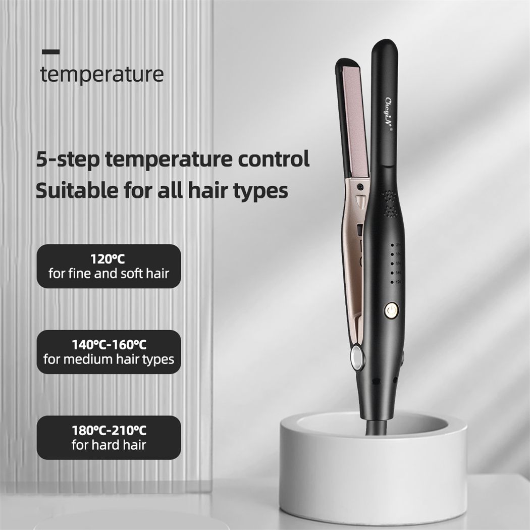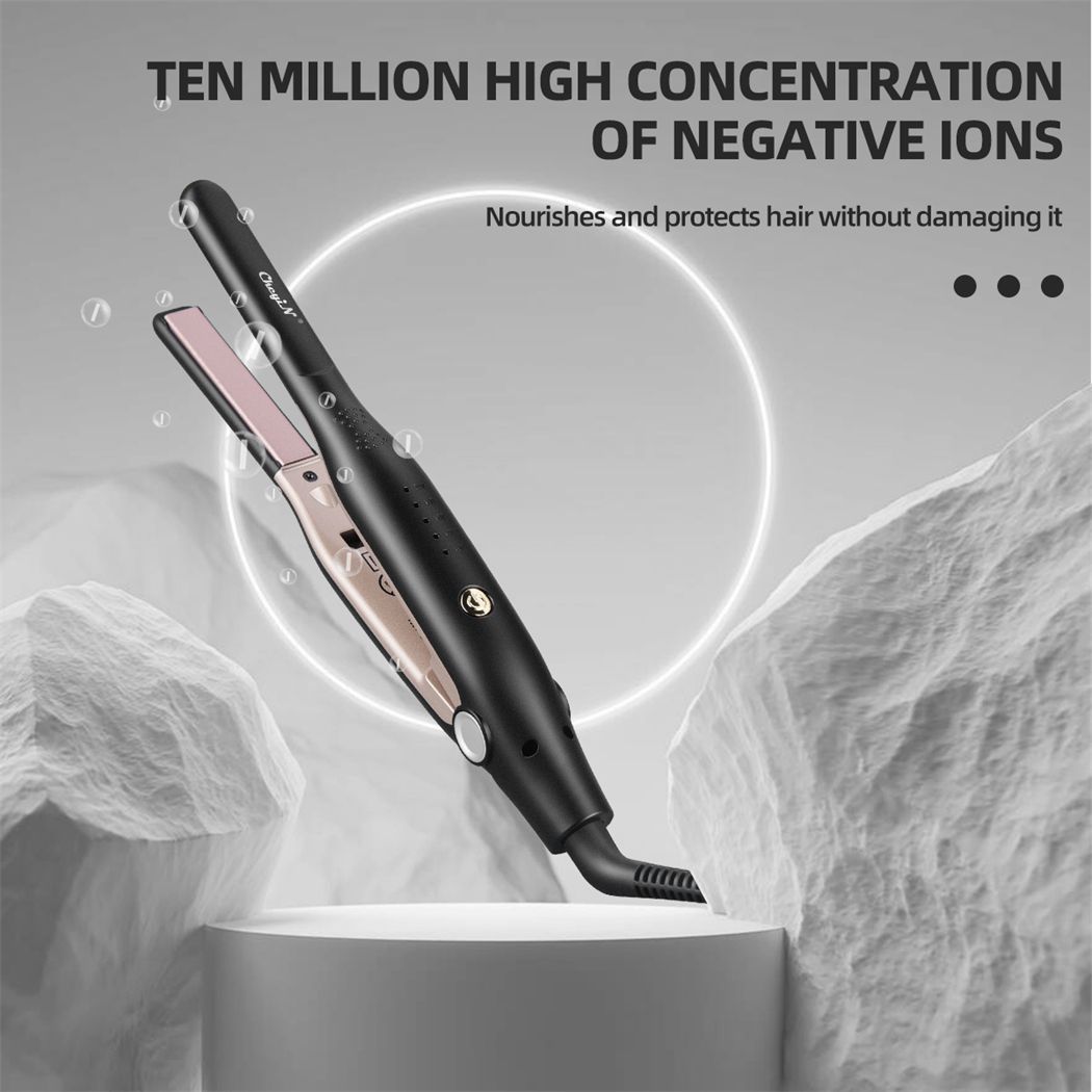 CkeyiN 2 in 1 Hair Straightener and Hair Curler 13MM Negative ion Narrow Titanium Plates Flat for Short Hair and Pixie Cut