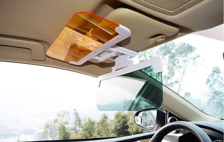 1. Car sun visor extender sun blocker HD protects sensible eyes from annoying direct light of the morning and evening sun. The car visor extender dark shield filters the UV light 97,4 % and the yellow shield eliminates the dazzle light of the oncoming traffic.