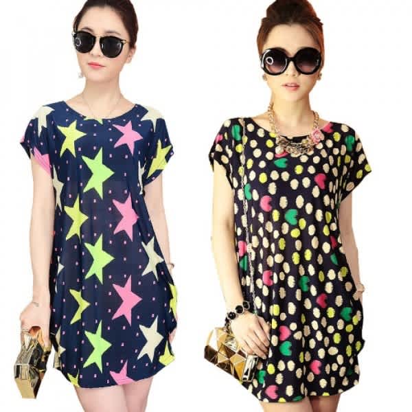 Buy 2 in 1 Ladies Star Print + Dot Love Print Ice Silk Mini Top Blouse in Nigeria