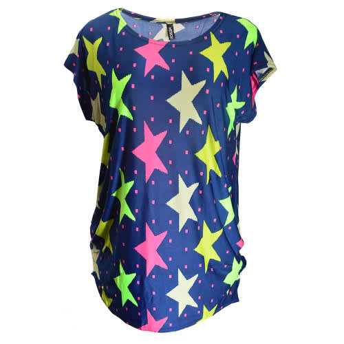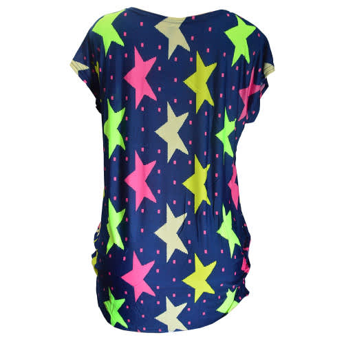 Ladies Short Sleeve Lips Print Top Blouse - Multicolour