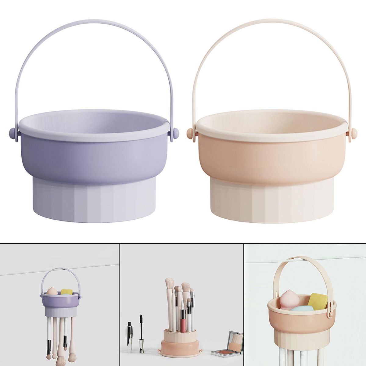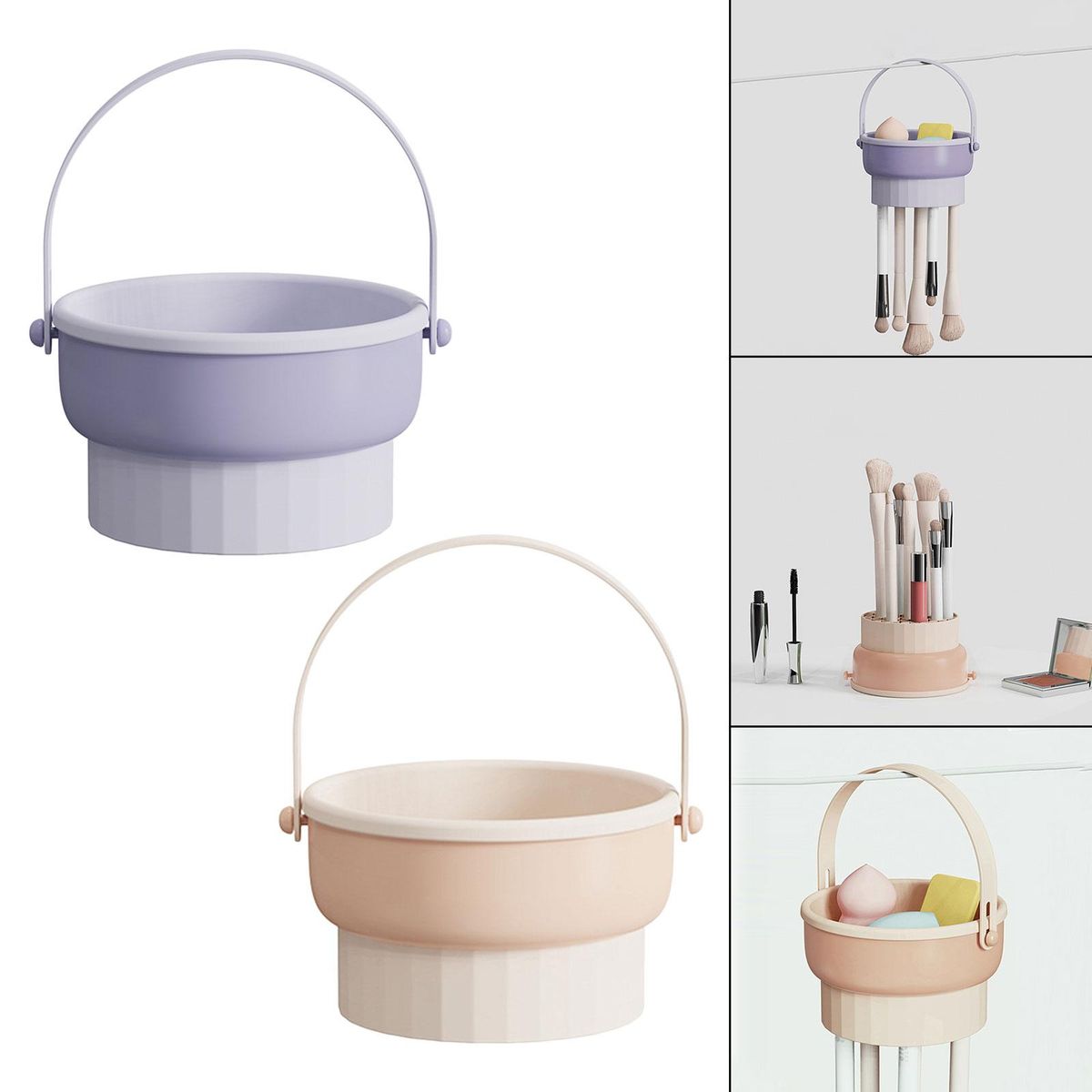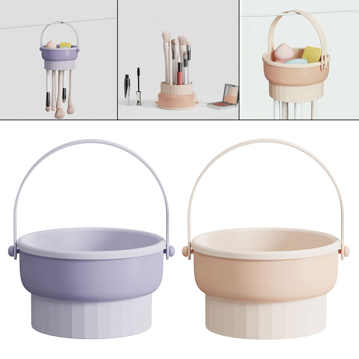 【Multipurpose】: 3 in 1 Makeup Brush mat can easily meet airing small items needs.Integrated cleaning, drying, and drying provides you with a unique cleaning experience.Can be used as a makeup brush storage rack and placed upside down on the desktop to store brushes.Hanging handle bowl meet airing sponges and small items needs, with holes at the bottom, which can insert brushes for airing or storage.
