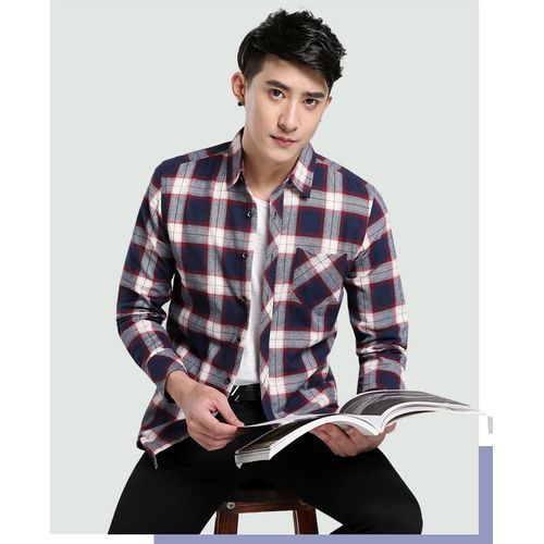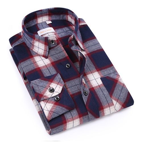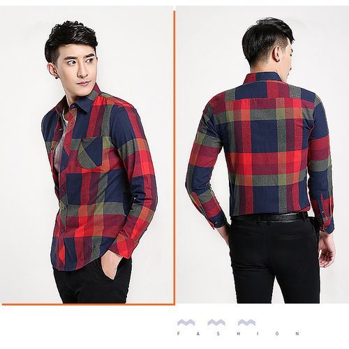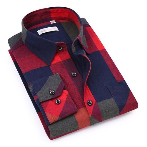 2-in-1 men's plaid casual long sleeve shirt--Red combination