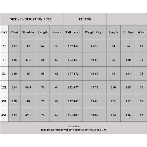 *Size 4XL FOR Tall:182-187(CM) Weight:80-87(KG)