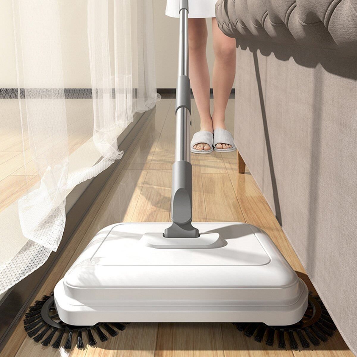 2-in-1 Multifunctional Hand Push Sweeper Floor Cleaning Tool Sweeping Mopping Magic Manual Spin Brushes Broom With Cloth