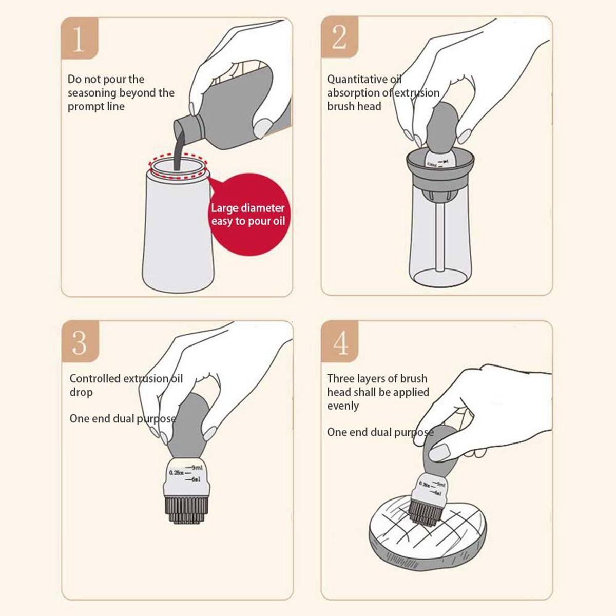 Applicable scenarios: Milk,rapeseed or vegetable oil, soybeans, rapeseed, lime juice, maple syrup, Japanese miso, can be poured into empty bottles. Peanut or hot sauce, teppanyaki in the kitchen, chocolate, butter, ketchup, candy, eggs, popcorn, mushroom sauce, syrup, lemon or orange or coconut oil. The brush is simple to use.