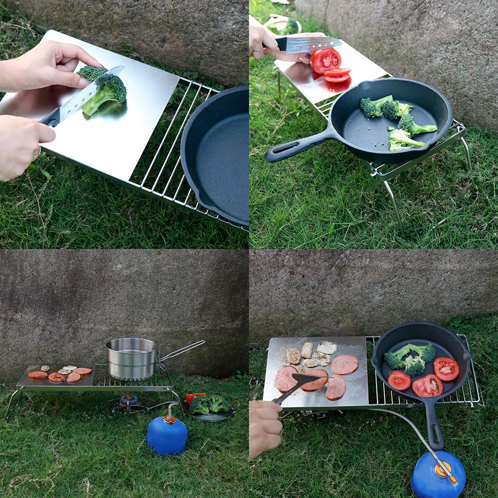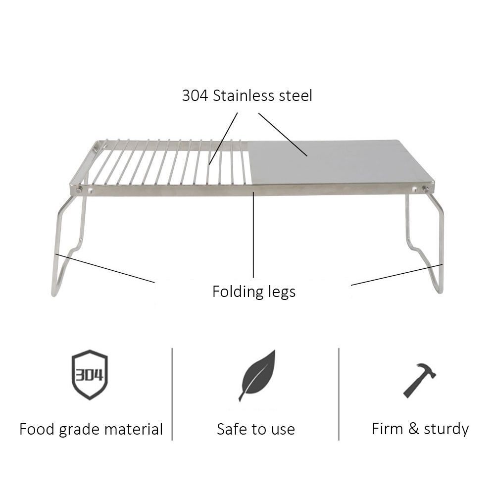 Stainless steel frame, can withstand heavy weight or high heat. On the one hand, You can use burner, gas stove, charcoal under the stand. On the other hand, you can put cooker, pot on it, or even as BBQ grill. Suitable for camping, hiking, backpacking, picnic, BBQ, garden party, etc.