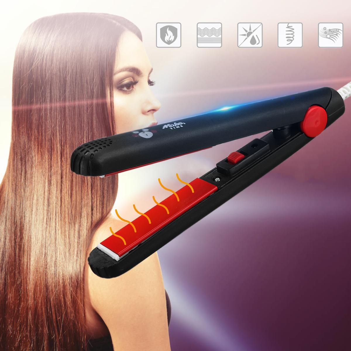 Specifications: Material: PBT matteshell , ceramic glaze heater Voltage:110~220V Power: 20W Frequency: 50/60 Hz Function: straight hair curly hair dual purpose Care: negative ion hair Temperature control: thermostat is not adjustable Preheating: 160 ° C Applicable hair: DryWet Maintenance: Wipe with a soft dry cloth, or use a cleaning brush, do not dry clean, do not wash Size:17.5x2x3cm/6.9”x0.8”x1.2” Power cord length: 110cm/43.3” : Yellow, Coffee, Black, Blue, Purple, Pink, White Package includes: 1x Hair Straighter