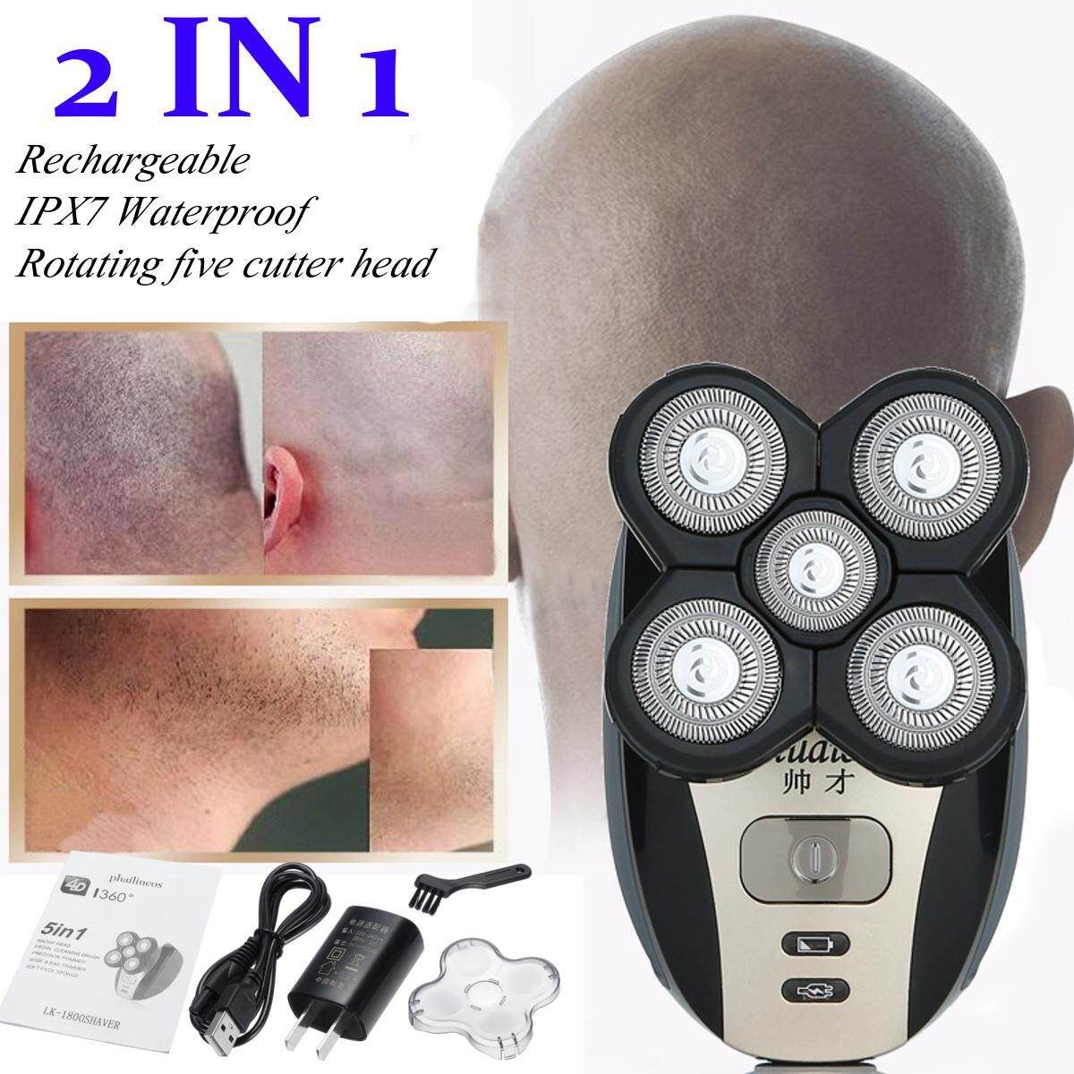 2 IN 1 Rechargeable ?Bald Head Cordless Hair Clipper Trimmer Groomer Specification: Name:4D Rechargeable Bald Head Material:ABS (Acrylonitrile Butadiene Styrene plastic) + Stainless steel Rated Voltage: 100-240V Frequency: 50/60Hz :3W Input voltage:5V Output :1W Type:Rechargeable(Built-in 350mAh?,rechargeable) Charge: 5 hours Endurance: 60?minutes(The specific time of use is related to the time of shaving) ? Package Include: 1 x Main Machine 1 x US Plug 1 x USB Cable 1 x Head 1 x Small Brush 1 x Cover 1 x English Manual ? Dual use: 1.Dampness shaving With the use of shaving foam(shaving foam not included) 2.Dry shaving Use it directly, experience at any time and anywhere ? Features: - Ergonomic design for a more comfortable - Trim,shape and style facial hair - Pre-shave massage brush softens stubble - Can be opened,easy to operate and easy to clean - Rotating head.double ring independent floating . Smart floating system,fit your face - Charging and discharging indicator, 5 hour , 3W. -The whole body washable design, can be washed directly with tap water, safe and practical. ? 1.Function(2 IN 1): Equip with Haircut and?Bald head shaving beard trimming with double sharp nets save your money, economy, practical, safe sharp enough, give you more space in your bathroom make you clean in short time before leaving home 2.Rechargeable?& Long lasting: in 3 hours keep working for over 60 mins.Solve the problem of repeated charging.Charge with any phone adapters 3.Shaving No Bleeding: Comfortable head & beard shaving experience with 1 flex head floating design, nicely attach to your face chin surface, sharp with easy-to-go design, shaves?quickly?more safer avoid bleeding 4.Hole Body Waterproof: Washable IPX7 waterproof body can be used in your shower or shaving in the morning, also make your cleaning nice easy.Simple open each cap of the heads, clean the excess hair away with flowing water.Keep in a cool place to dry. ? Tips: Maintain nicely with during?and storing in a dry and cool place. Please keep away children's touch. ? Notice: 1.The real of the item may be slightly different from the pictures on website caused by many factors such as brightness of your and light brightness. 2.Please allow slight deviation for the measurement data. 3.Please allow?1-3cm?error due to the hand measurement . ? If?you?have?any?questions,?please?contact?us. Wish?you?have?a?happy?shopping?time!