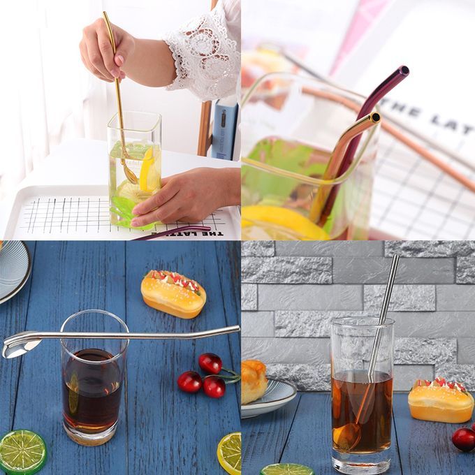 Similar Items Description Package Included: 1 x 2 in 1 Spoon Features: 1. 304 stainless steel: Made of professional food-grade 304 stainless steel, innoxious, no peculiar smell, anti-rust, resists corrosion and durable, offer you health protection. 2. Multi-use: Great for yerba mate, loose leaf teas, fresh coffee, pulpy juices, lemonade and more, included hot and cold drinks. 3. Fine & Smooth Suction Nozzle: suction nozzle designed flat and exquisite, guarantee safety and will not scratch your mouth. 4. Easy to Clean: This stainless steel spoon straws designed with double-sided and encrypted filter hole, filter more thoroughly, clean more cleanly. 5. Say no to throwaway or plastic flatware, it is an environmental protection way to use reusable tableware. Specification: Material: 304 stainless steel Color: Black/Multi-color/Rose gold/Gold/Silver Type:Round/Oval Size: Oval: 21.5x2.6cm Round: 19.5x2.8cm