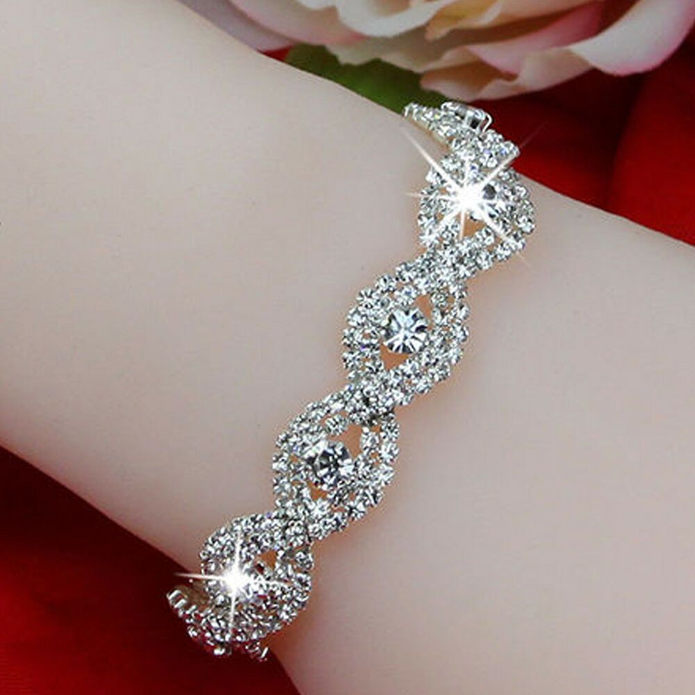 Silver Rhinestone Crystal Bracelet Women's Wrist Jewellery |