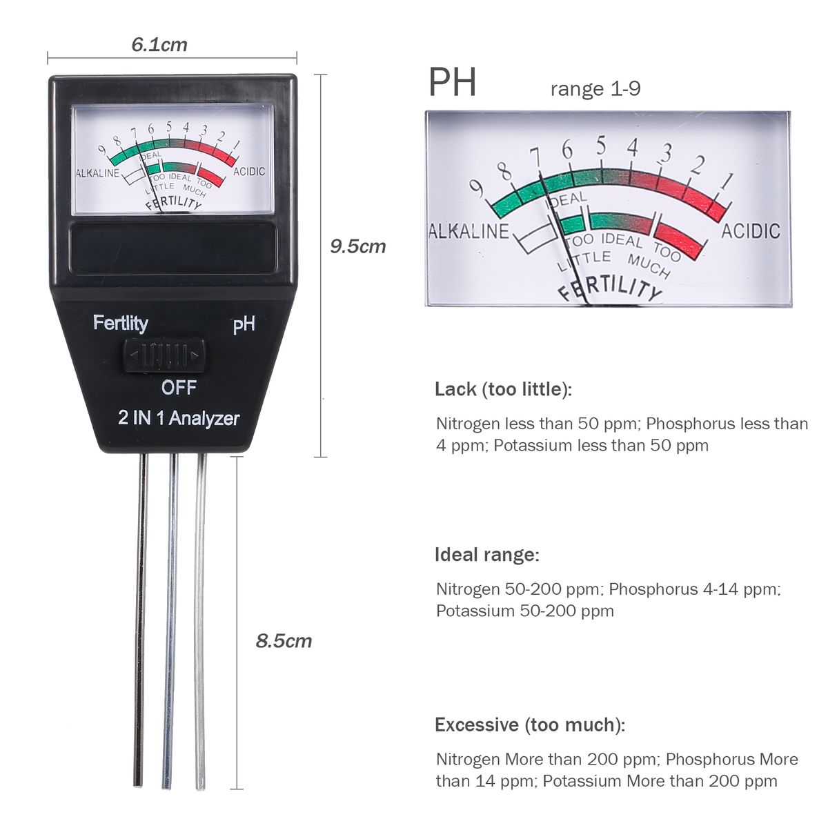 Lightweight, portable, compact design, easy to carry, very suitable for indoor and outdoor use. Ideal soil testing tool for plants, gardens, lawns and farms.