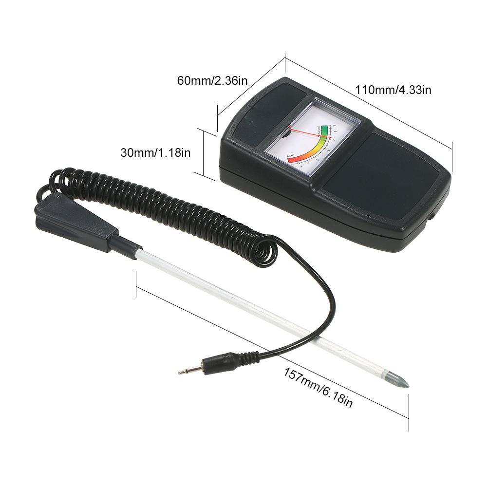 User-friendly Design: single probe designed to test soil pH value, the tester and probe are separable, and they are connected by a telephone cord that can be stretched up to 1-meter.