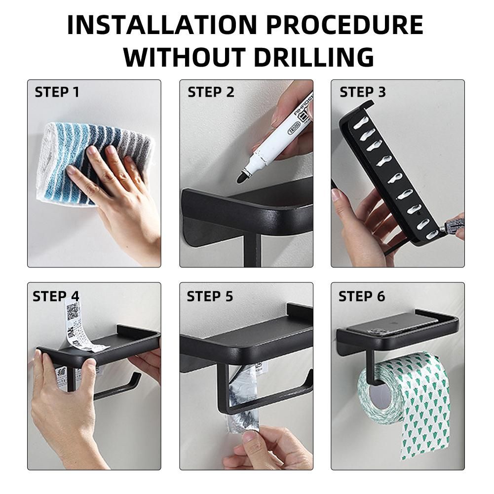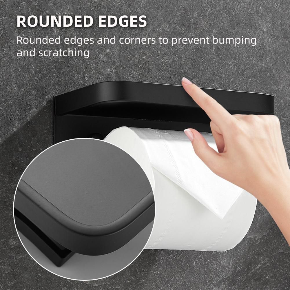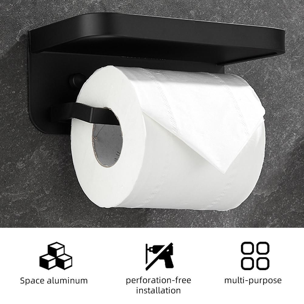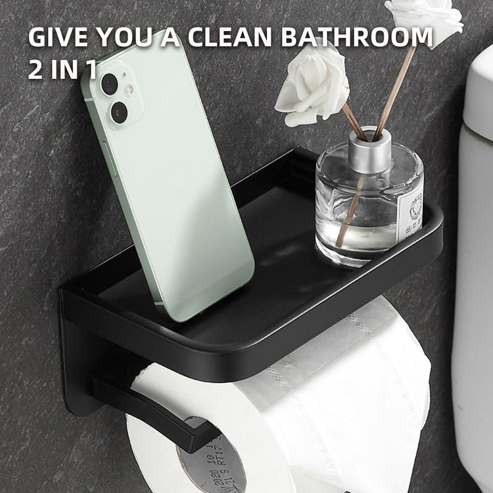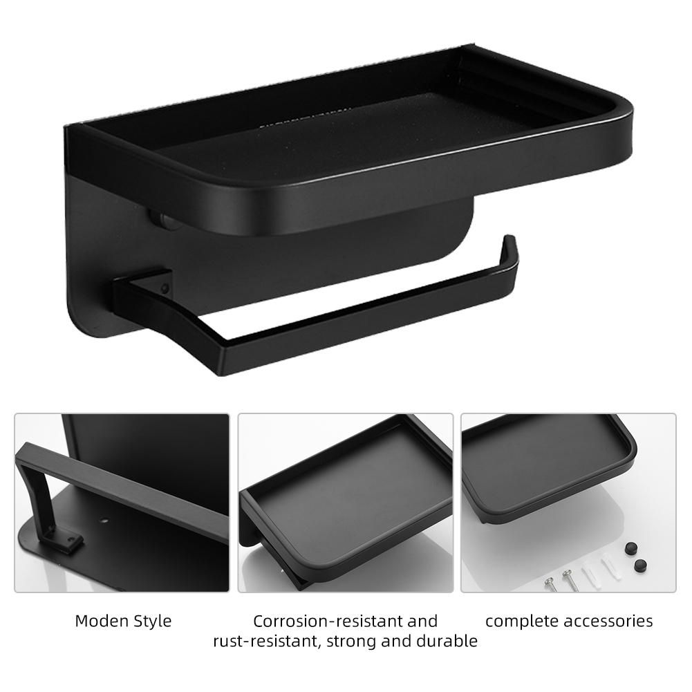 Buy 2 IN 1 Toilet Paper Holder With Phone Shelf for Bathroom Washroom Wall Mounted Black Color in Nigeria