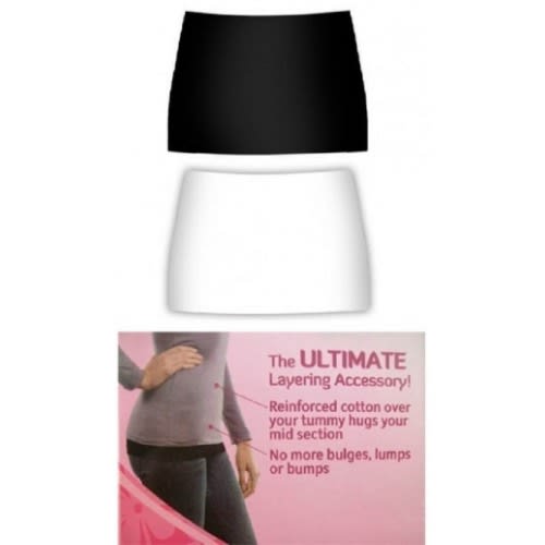 Cover your waist, belly and rear with this non-bulky half-top that covers your hip area, so you can wear the popular layered look without bulk and without exposing skin. Also holds in your tummy to eliminate "love handles" around your mid-section.