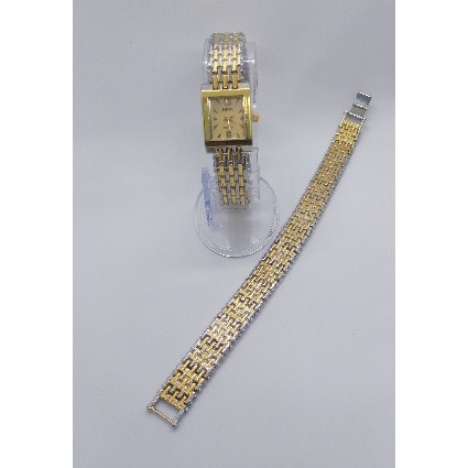 2 In 1 Two Tone Sleek Wrist Watch And Bracelet Set- Gold/silver