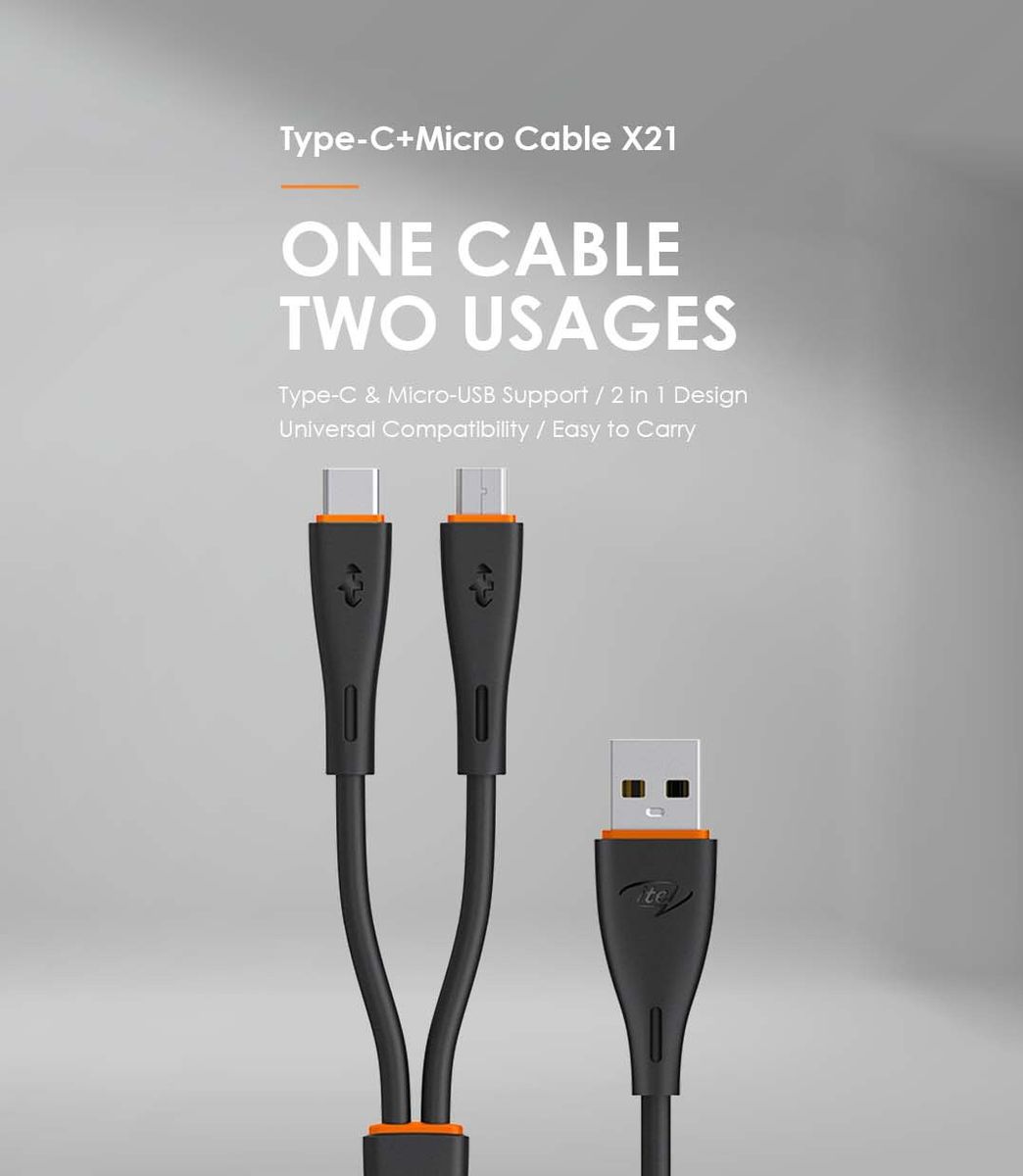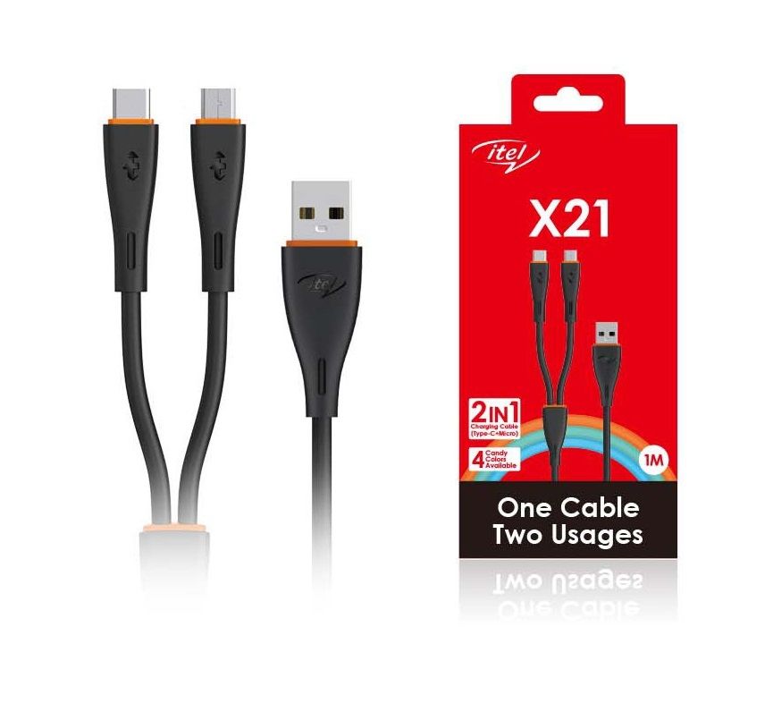This Itel X21 Type C & Micro Cable is the perfect charging solution for your devices. It offers a 2 in 1 charging cable with a 1m USB to Type C & Micro USB Cable, allowing you to easily charge your equipment. The package size is small and light, measuring 140mm x 70mm x 20mm and weighing 49g. Each package includes 1 cable, so you can be sure you have everything you need.