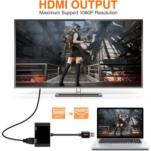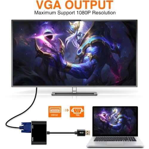 USB 3.0 to VGA Video Display Adapter 1080P Multi-Display External Converter Cable for Laptop PC Monitor Projector Windows 7/8/8.1Feature:USB 3.0 multi-display, super high speed transmission.Compatible with USB2.0.Allows you to convert the USB3.0 output port to analog VGA input.Supports full-size HD resolutions of 720P and 1080P.NOT Support Audio transmission.Provide USB3.0/2.0 high-speed port.For Windows 7/8/8.1.