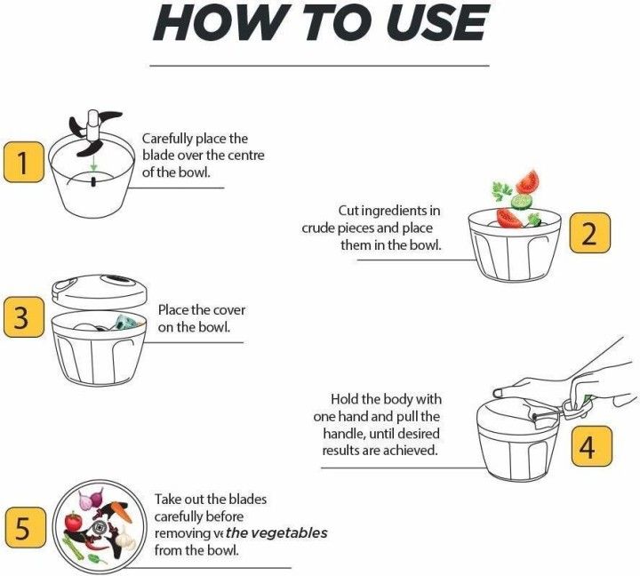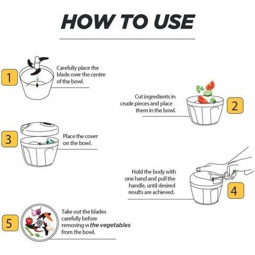 The New Handy L Chopper is an excellent solution to all of your fruit and vegetable chopping needs. Featuring 5 sharp and durable stainless steel blades and a unique string design, this manual chopper chops and cuts vegetables in a hassle-free manner with minimal effort. Simply cut the fruits or vegetables to a medium size in less than 30 seconds,unlike the other "choppers" with 2 squares blades, these are redesigned sharper blades and includes 5 blades instead of 3blades. place in the chopper and get an evenly chopped version for your salads, fruits, sabzi preparations and other cooking purposes,easy to clean and the bowl is dishwasher safe