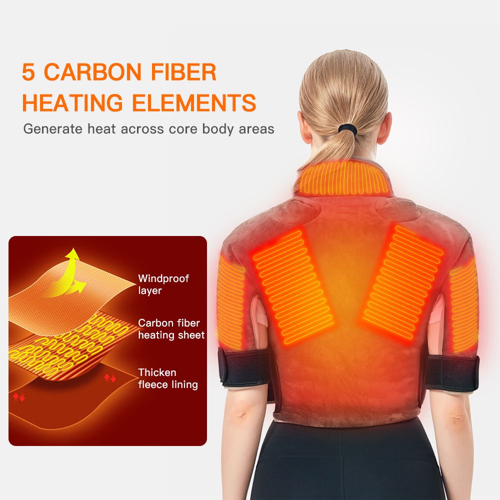 5 carbon fiber heating elements cover your neck, back,shoulders and arms.